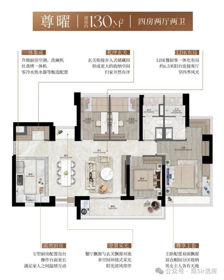 l颜值臻配:升级配置超大玄关柜、内嵌冰箱、灶蒸烤一体机、零冷水热水器、中央空调及厨房空调、轻松抽橱柜、双向流新风,以一体集成的精工美学,实现功能与颜值的并存。