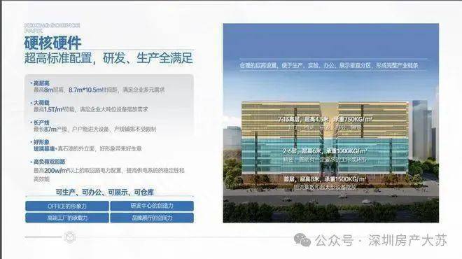 【光明科兴科学园】 出售面积:1297-2600-3500-7000平米 销售价格:1.23万/㎡起 交付标准:简装 地铁出口:6号线【长圳站】400米 适合行业:高端智能制造、芯片研发、实验室、机器人等 【写字楼出售信息】 交付时间:2026年8月 管理费:4元/平米 维修基金:0.25元/㎡ 总占地面积:38549㎡ 总计容面积:约24万㎡ 厂房层高:1楼8米、2-6楼6米、7-13楼4.5米 1楼承重1.5吨,2-6楼承重1吨,7-13楼承重0.75吨 超高使用率:84% 电梯配套:16部,货梯承重3-5吨 每层配置:2个吊装口 物业组成:厂房+配套宿舍+配套商业 可售物业:厂房(M1) 产权年限:50年红本高标厂房 项目地址:地铁6号线长圳站D出口往南约400米