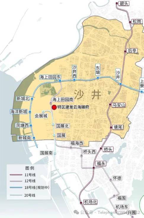 交通配套:项目距离地铁12号线海上田园南站步行约250-288米,距离地铁20号线会展城站步行约1公里。周边还有地铁11号线和规划中的18号线,交通网络四通八达,可直达大前海、宝中、南山科技园、福田中心等区域。此外,自驾出行也有宝安大道、107国道、京港澳高速、深圳外环高速等交通主干道可供选择。