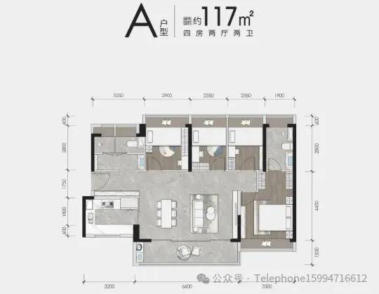 117㎡户型:大致上与108㎡户型相似,但各功能间面积稍大,入户的厨房和卫生间也更加宽敞,通透性更佳。
