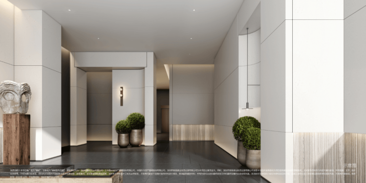 酒店化主入口、次入口、车库入口、首层大堂,酒店化迎宾与归家动线,以无风雨通廊为核,赋予归家更多体验感,带来高效、安心的归家出行之旅。